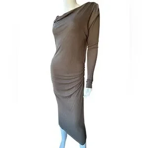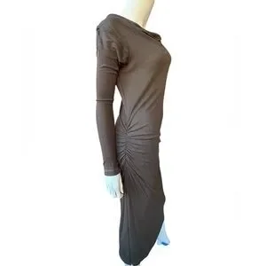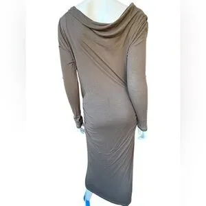 Vintage 00’s JAMES PERSE khaki/ brown l/s draped body con maxi dress Large
