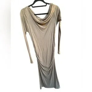 I love this soft casual long sleeve wide neck cotton blend draped maxi dress James Perse size 4 but as I was researching it I could not find one like this with the cowel neck / off the shoulder