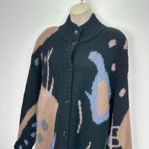 SEGUE Unisex Vintage 80s Wool Blend Abstract Button Down Duster Cardigan Sweater