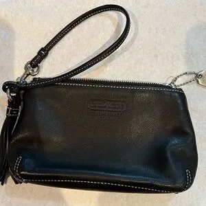 Coach Black Leather Wristlet with White Stitching