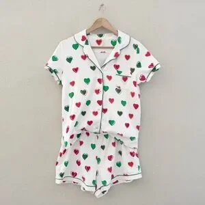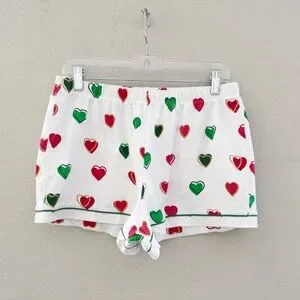 Roller Rabbit Big Holiday Hearts Pajama Short Set Large Green Red Pima Cotton