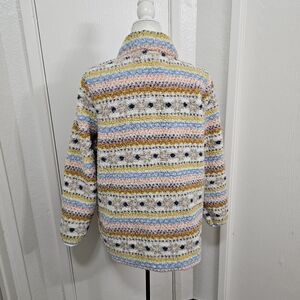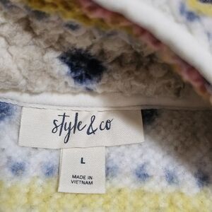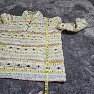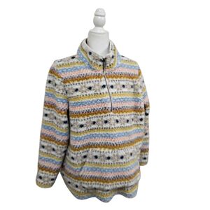 Style & Co Striped Soft Fleece Sherpa Teddy Pullover Sweater Cream Womens Large