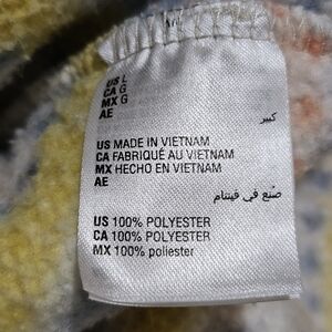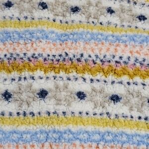 Cozy fleece pullover with colorful stripes. Features a half-zip design.
