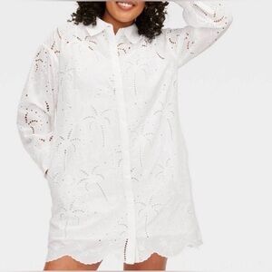 Darling palm tree eyelet dress/shirt or cover up in white. Perfect for beach days and poolside lounging. So much versatility!! See last picture for sizing. Dress is brand new with tags & this collab between Roller Rabbit & Target is completely sold out!