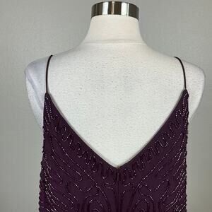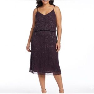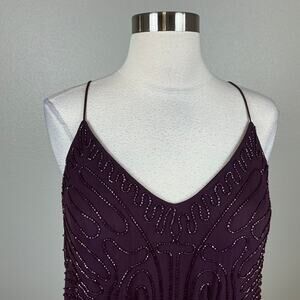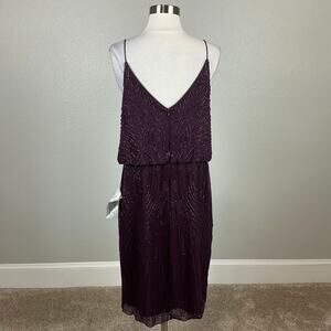 J Kara Beaded Chiffon Sleeveless Midi Sheath Cocktail Dress Purple Size 10
