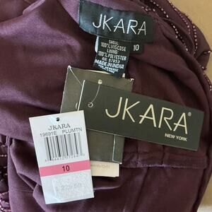 Keywords: J Kara, Plum Purple, Chiffon, Beaded, Floral, Hand Beaded, Mock Neck, Sleeveless, Midi, Tea Length, Sheath, Wedding Guest, Cocktail, Party, Mother of the Bride, Mother of the Groom, Size 10, NWT