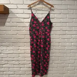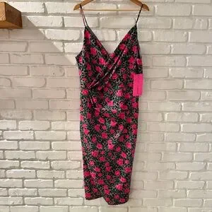 Floral Slip Dress Pink Rose Print Midi Bodycon Spaghetti Strap Y2K 90s Chic Date