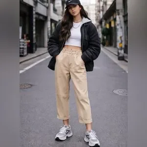 Twik Beige Cropped Carpenter Pants