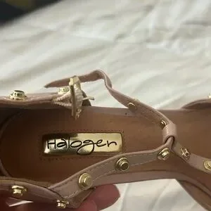 Stylish taupe heels with gold studs. Perfect for adding flair to any outfit.