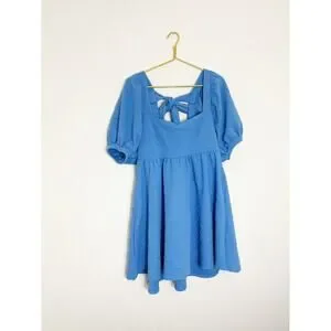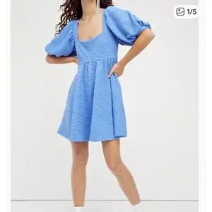 Free People Violet Mini Dress Size Large Sky Blue Puff Sleeve Babydoll Coquette