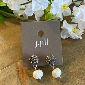 Elegant J. Jill drop earrings featuring sparkling crystal pavé studs with soft faux pearl drops 🤍✨