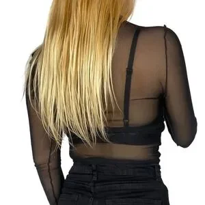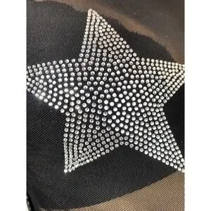 Shine like a star in the Starry Night Sheer Mesh Jewel Top by Molliwater. This black mesh beauty features long sleeves, star-shaped jewel embellishments on the breasts, and a flirty lettuce trim hem. With a touch of stretch, this brand-new top is perfect for adding a touch of celestial charm to any outfit.