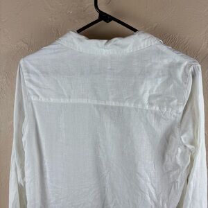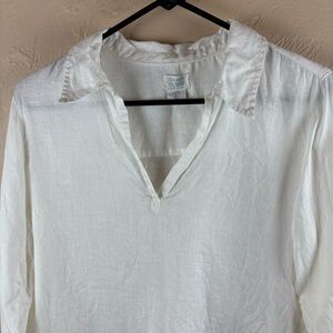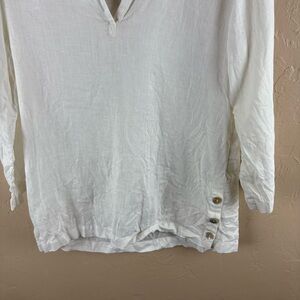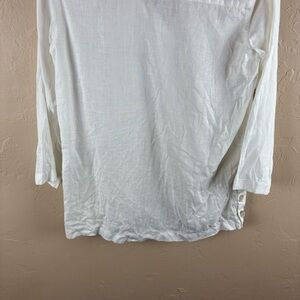 Sigrid Olsen White Linen Blouse Collared Pullover Lagenlook Small