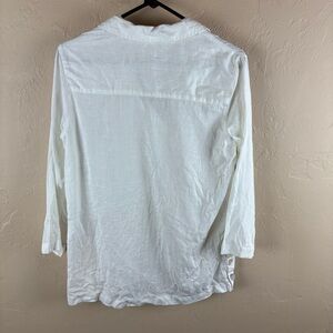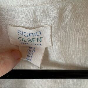 Elegant white blouse by Sigrid Olsen. Features a classic collar and button details. Perfect for any occasion.