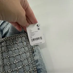 NEW Frame The Showgirl Straight-Leg Jeans MSRP $1298 Embellished Diamonds