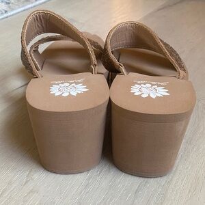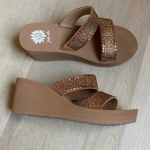 Yellow Box Gold Crystal Platform Wedge Double-Strap Slide Sandals - Size 6