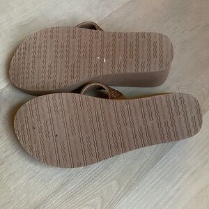 Small indentation in foam in front of left sandal as pictured.