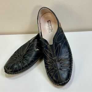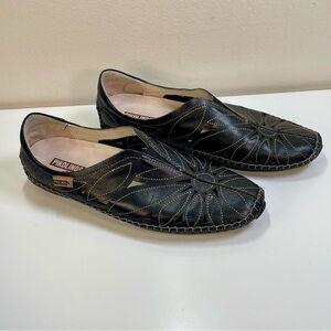 Pikolinos Jerez Black Leather Floral Cutout Loafers Moccasins size 39 EU 9 US