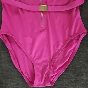 Michael Kors Pink long Sleeve Zip Up Front Gold Tone Logo Belt One Piece Paddle Swimsuit Size 8