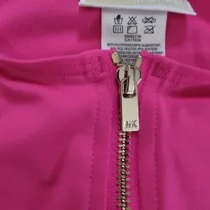 Michael Kors Pink long Sleeve Zip Up Logo Belt One Piece Paddle Swimsuit Size 8