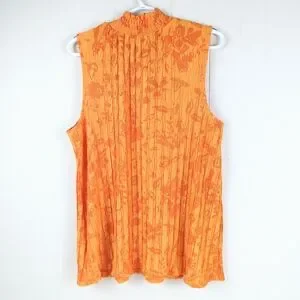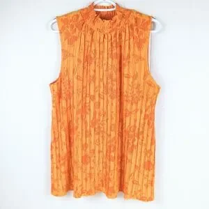 Cato Orange Floral Pleated Sleeveless High-Neck Top Size 14/16W