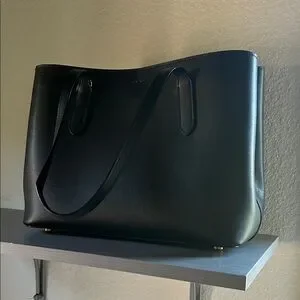 Coach Black Leather Tote with Gold Logo Plaque F48733 Avenue