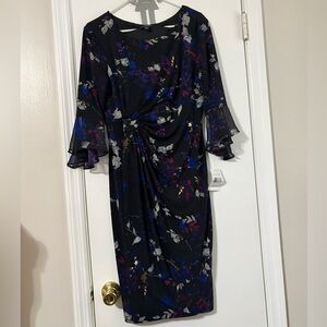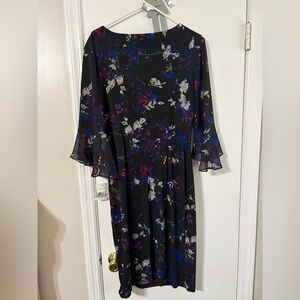 Connected Apparel Womens black Saphire Floral Fit & Flare Dress 12 New