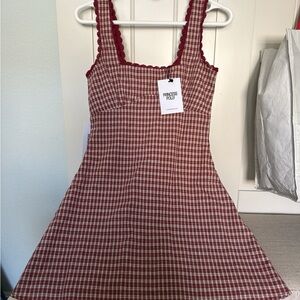 Princess Polly Burgundy and White Checked Square-Neck Mini Dress