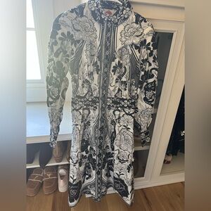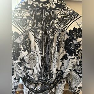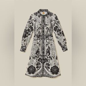 Farm Rio Black and White Flower Leopards Collared Midi Dress / NWT