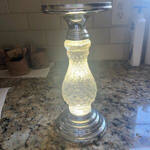 Bath and Body Works candle holder, water globe, takes 3 AA batteries. In good condition.