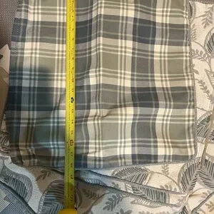 Set of pillowcases with a leaf pattern. Features blue and cream colors. 1 plaid in same color pattern included.