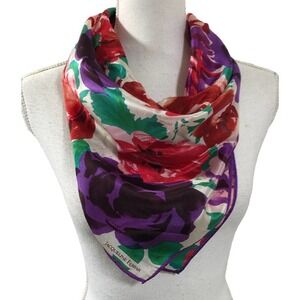 vintage Jacqueline Ferrar rose flower print square scarf silk 30" x 30" Japan