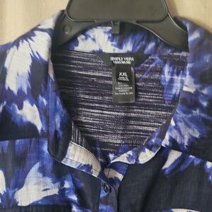 Beautiful SVW shirt dress in excellent condition. Short sleeves. Button front. Drawstring waist. Chest pockets. Side pockets. Side slits. Collared. The bust measurement from pit to pit is 25 inches. The waist measurement is 22 inches. The length from shoulder to hem is 37 inches. Measured flat. Sweet in a size XXL.