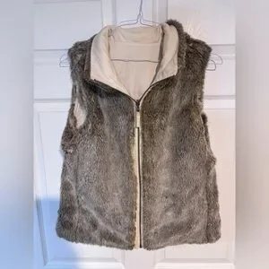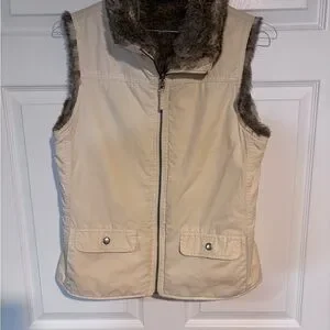 Vintage Cream Faux Fur Lined Vest, reversible EUC