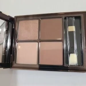Versatile neutral quad palette in warm brown and champagne tones. Smooth matte and shimmer finishes for natural daytime or polished evening looks. Includes dual-ended applicator for easy on-the-go application. Blendable, buildable color in warm brown and bronze shades.