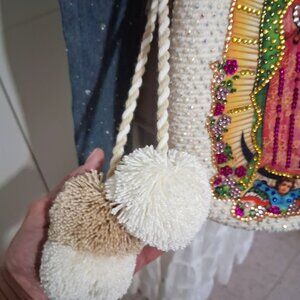 Rhinestone Beaded Wayuu Tasle Pom Pom "Lady of Guadalupe" Bag