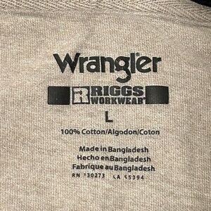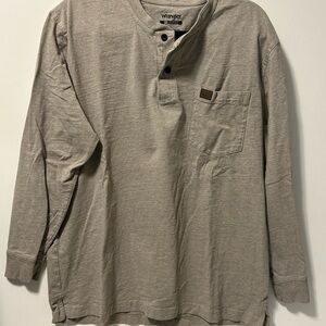 Classic Wrangler Henley with long sleeves. Features a chest pocket and buttoned neckline. Ideal for casual wear. Generously sized large. Excellent condition.