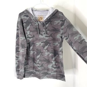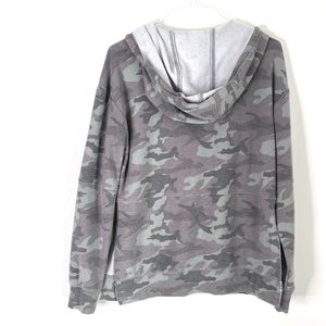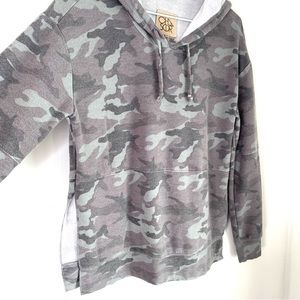 Chaser Grey Green Camo Oversized Hoodie Split Hem Drawstring Soft Size XS.