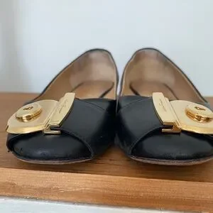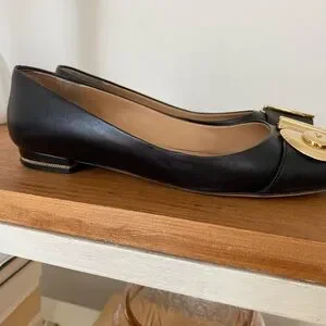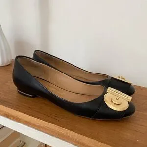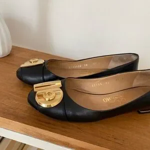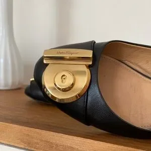 Salvatore Ferragamo Fiamma keyhole black and gold flats