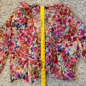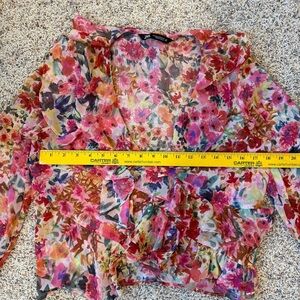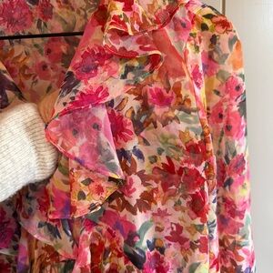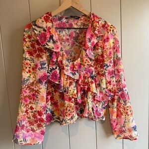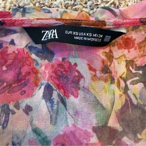 Zara Floral Ruffle Blouse XS - Romantic Pink and Red Top