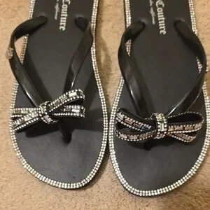 Juicy Couture Black Sandals with Rhinestone Bow