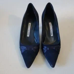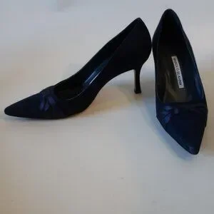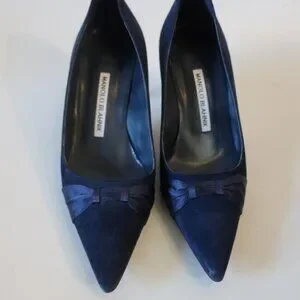 Womens Manolo Blahnik Blue Suede Pointy Heels Shoes Pumps 36 US/6