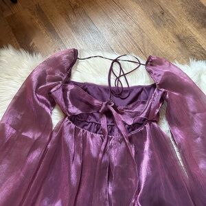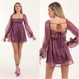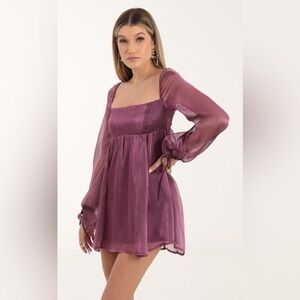 LUCY IN THE SKY Crinkle Long Sleeve Babydoll Mini Dress