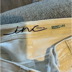 Bag013. Like new Skinny Leg, Regular Fit Sz 12, rise 11, ins 31. Cream color pants with a shimmer. Really Nice!!