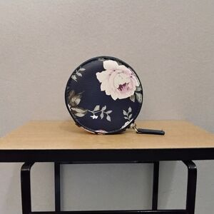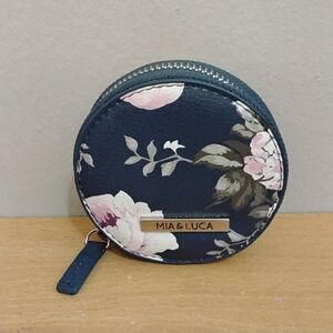 MIA & LUCAS Navy Floral Round Zip Coin Pouch – Like New