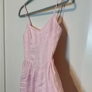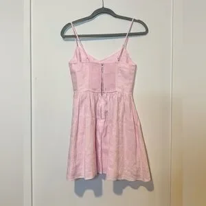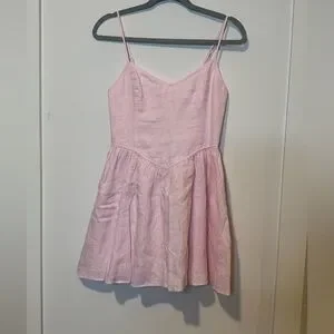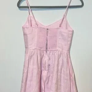 This is a fit-and-flare mini dress with a sweetheart neckline, adjustable straps and a smocked back panel. It’s made from breathable 100% organic linen with a natural texture and soft, airy feel.