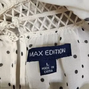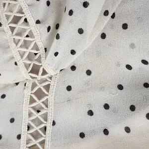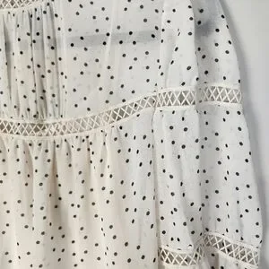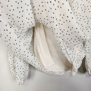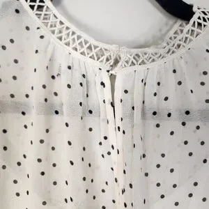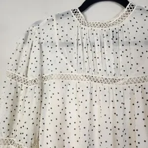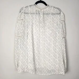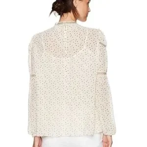 Women's Cream & Black Speck Print Peasant High Neck Sheer Blouse Large
