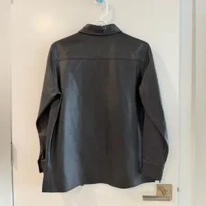 Lafayette New York 148 black leather longline button up shirt Size 6 #leather