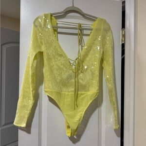 NWT Bardot Yellow Sequin Bodysuit