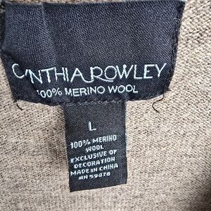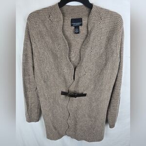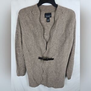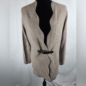 Cynthia Rowley Elegant Tan Women's Merino Wool Cardigan Sweater with Buckle Sz L